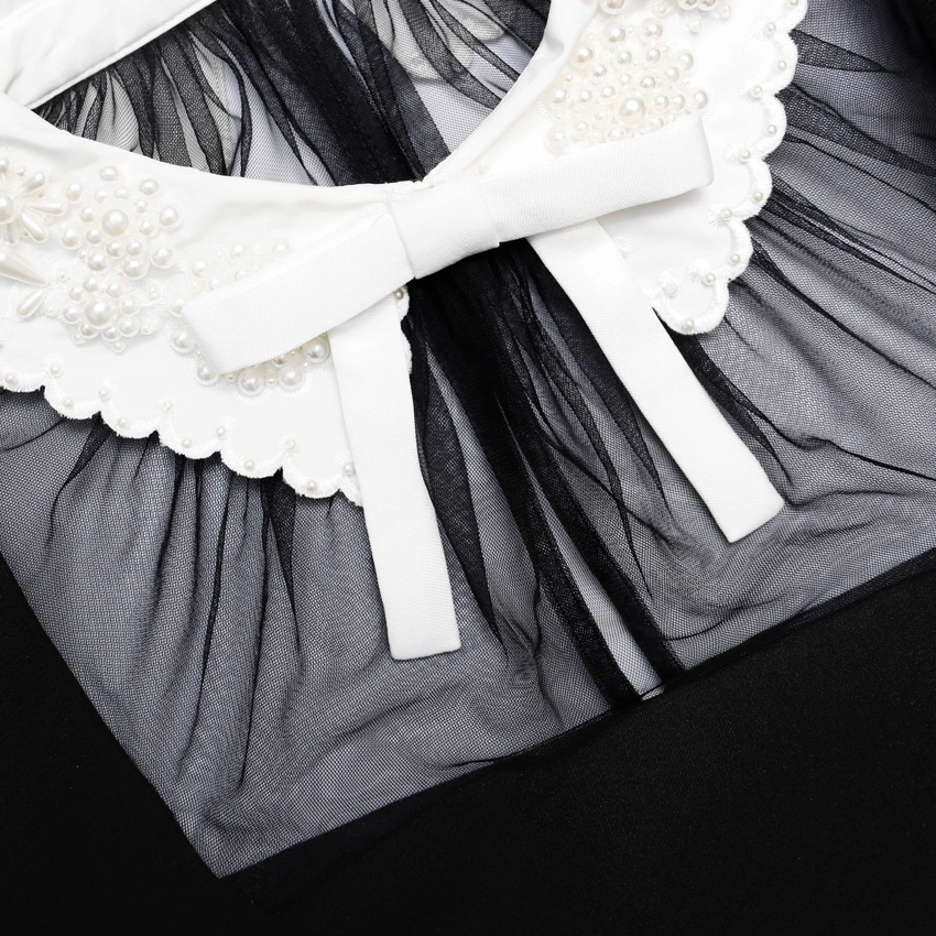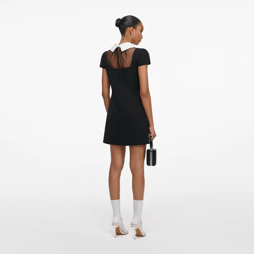 Black Crepe Bow Collar Dress